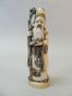 Statuette en ivoire patiné et polychrome représentant un sage barbu tenant un bâton noueux et portant un rouleau, cachet rouge sous la base. Chine Première moitié du XXème siècle. Hauteur : 15,5 cm.