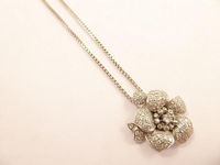 Collier en or gris 750 mil. à maille vénitienne, retenant un pendentif floral en or gris 750 mil. (Pierres imitation). (Longueur : 44,5 cm environ). 13,7 g.