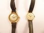 Montre-bracelet de dame OMEGA en or 750 mil., boîtier rond, cadran argenté deux tons à index épis appliqués, mouvement mécanique, sur bracelet cuir accidenté à boucle ardillon en métal siglée. Signée et numérotée. (Diamètre boîtier : 27mm). (Verre rayé et craquelé). 21,4 g. brutMontre-bracelet de dame BAUME & MERCIER en or 750 mil, boîtier rond, cadran argenté à chiffres romains, index épis, petite seconde à 6H, mouvement mécanique, sur bracelet cuir usé à boucle ardillon en métal non d'origine. (Diamètre boîtier : 21mm). (Oxydations, verre craquelé et fissuré). 12,4 g. brut