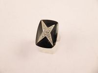 Bague MAUBOUSSIN "Etoile Divine" en or gris 750 mil ornée d'un motif en onyx rehaussé d'une étoile pavée de diamants brillantés, signée et numérotée. (TDD : 54). (Onyx cassé). 12,8 g.
