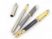 3 stylos CARTIER en métal doré, métal argenté, éma