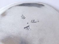 Tastevin en argent 950 mil. uni, la prise annulaire à serpent enroulé. Poinçons de la généralité de ORLEANS du XVIIIe, Orfèvre IP sur croissant, contremarque Bonnefoi 1781-1789 et petite garantie départementale au crabe après 1838. Poids : 101.5 g. Diam. 8.8 cm. L. 11.8 cm. H. 3.2 cm. Légère bosse.