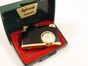 Briquet DIPLOMAT en résine noire et métal doré avec montre intégrée AGON, mouvement mécanique. Dans son écrin. (Dimensions : 5,8 x 3,6 cm environ).