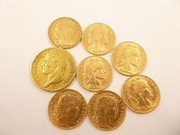 Lot de 8 pièces de monnaie en or 900 mil dont 7 pi