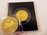 Pièce de 100 gourdes haïtiens en or 900 mil avec étui. 19,9 g. Médaille en or 999 mil commémorant les jeux Olympiques de Mexico de 1968 avec boîte. 8,8 g. Poids total brut : 31,9 g.