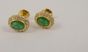 Paire de boutons d'oreilles en or 750 mil. centrée d'une émeraude dans un entourage de diamants. 3,8 g.
