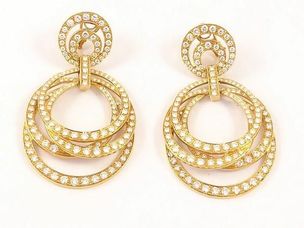 2 200 / 3 000 €Paire de clips d'oreilles en or 750 mil composés d'anneaux entrelacés rehaussés de diamants. 38,7 g.