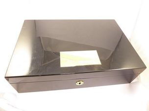 400 / 600 €2 coffrets MONTBLANC à stylos : 1 en cuir de 8 stylos et 1 coffret en laque à 2 étages de 20 stylos. (Salissures).