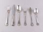 CHRISTOFLE, MALMAISON, production moderne : partie de ménagère de 48 pièces en métal argenté comprenant 12 couverts à poisson, 6 grands couverts, 6 grands couteaux lames inox et 6 cuillers à entremets. Légères rayures. Très bel état des couverts à poisson. 3 housses.