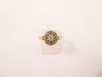 Bague marguerite en or 750 mil. et platine 850 mil. centrée d'un diamant TA (ébréché) dans un entourage de roses (TDD : 53) (légère déformation) (diamètre : 0,9 cm). 3,4 g.