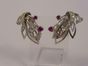 Paire de boucles d'oreilles à motif floral ajouré en or gris 585 mil ornées de diamants, diamants 8/8, roses et pierres rouges. 7,8 g.