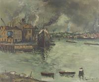 Robert L.P. LAVOINE (1916-1999) "Vue du Port de Rouen" Huile sur toile, signée en bas à droite, située au dos. Dimensions : 54 x 65 cm. (Non encadrée)