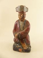Statuette figurant un Dignitaire assis en bois polychrome, rehauts or et argent. Chine. XVIIIe-XIXe siècles. Hauteur : 23,5 cm. (Fentes, manques, cachet cire sur la base)