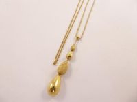 Deux colliers en or 750 mil dont un retenant un pendentif "gouttes" lisse et amati en chute. (Longueur : 46 cm pour l'un et 25 cm pour l'autre environ). 7,1g