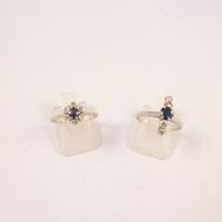 Bague en or gris 750 mil (saphirs, diamants 16/16) (TDD : 52). 3,6 g. + Bague fleur en or 585 mil (saphirs, diamants 8/8). (TDD : 52). 1,2 g.