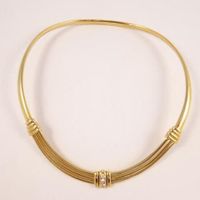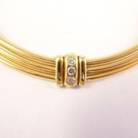 Collier torque en or 750 mil centré de 3 diamants brillantés. 31,8 g.