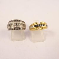 Bague bandeau en or gris 750 mil sertie de diamants blancs et noirs brillantés et 8/8 (TDD : 52), bague en or 750 mil (saphirs, diamants 8/8). (TDD : 55). 6,4g .