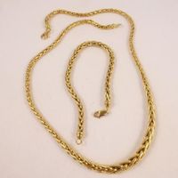 Collier et bracelet en or 750 mil à maillons palmier (longueur : 44,5 et 16,5 cm). 19,7 g.