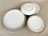 HAVILAND : Partie de service à dessert en porcelaine à décor d'un filet or et d'une guirlande de roses comprenant 12 assiettes à dessert (diamètre : 21,5 cm.) et 3 plats ronds (diamètre : 29 et 32 cm). (Eclats)