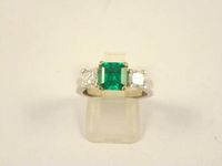 Bague en or gris 750 mil centrée d'une émeraude ca