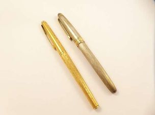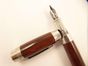 E) (Article 524 bis du CGI al. c) : Stylo-plume MONTEGRAPPA, Stradivari. Edition limitée à 2000 exemplaires de la collection des "Genio Creativo" rendant hommage au luthier italien Antonio Stradivari (1644-1737), dit Stradivarius. Attributs en métal, résine marron marbrée à l'imitation du bois, agraphes rappelant les quatre cordes du violon, plume deux ors 750 mil. exemptée gravée du dessin d'un violon et des initiales A.S., un diamant taille 8/8 au sommet du capuchon. Remplissage à piston. Signé et numéroté 1375/2000. 46,3 g.