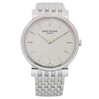 PATEK PHILIPPE, Clous de Paris. Montre d'homme ronde (diamètre : 35 mm) en or blanc, 750°/oo. Lunette guillochée « Clous de Paris ». Fond squelette vissé. Cadran argenté mat, index bâtons en applique. Mouvement mécanique plat à remontage automatique. Calibre : 240 111. N°1206 192. Bracelet or blanc 750°/oo, fermoir échelle. Poids brut : 106,4 g. Poignet : 17,5-18,1 cm. Boîte, écrin, pas de papiers.