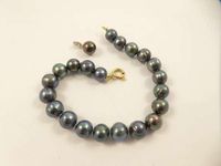 Bracelet d'un rang de perles de culture d'eau douce grises, fermoir en or 750 mil (longueur : 20,5 cm environ). Pendentif en or gris 750 mil (perle de culture grise). 23,2 g. brut.