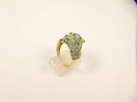 Bague panthère en or 750 mil ornée d'une émeraude et de diamants 8/8 (TDD : 52,5). 6,9 g.