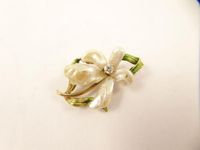 Broche florale en or 750 mil émaillé composé de perles de culture baroque centrée d'un diamant (émail accidenté, une perle trouée). 4,6 g. brut