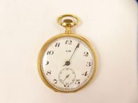 Montre de gousset LIP en or 750 mil, cadran blanc à chiffres arabes, petite seconde à 6 H, mouvement mécanique (chiffrée T.J., chocs, 1 aiguille cassée, manque). 70,6 g brut.