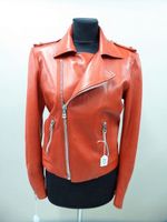Richard ORLINSKI « Born Wild » édition limitée numéro 1 : Perfecto en cuir rouge, petit col, fermeture zippée, deux poches, manches longues, orné d’un crocodile en relief au dos. Taille 42 environ, taches