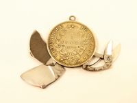 HERMES Paris. Manucurie « Jeton » en argent 925 millièmes faisant coupe-ongles, repousse-peau et lime (en métal). Pds brut : 28,0 grs. (Objets non poinçonnable).
