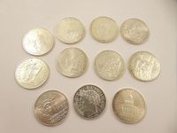 11 pièces de 100 FRF en argent 900 mil. 165 g.