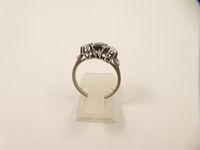 Bague en or gris 750 mil et platine 850 mil centrée d'un saphir ovale épaulé de diamants TA (TDD : 52,5). 3,5 g.