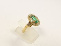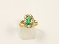 Bague en or 750 mil centrée d'une émeraude égrisée