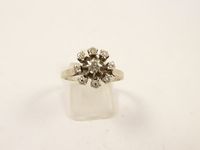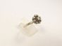 Bague fleur en or gris 750 mil ornée d'un diamant brillanté entouré de diamants 8/8. (TDD : 55,5). 3,1 g.