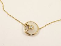 Bracelet en or 750 mil maillons forçat orné d'un motif en nacre centré d'un diamant signé CARTIER "Collection amulette" (longueur : 18 cms). 2,3 g. brut