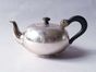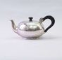JOSEPH-THEODORE VAN CONWERGHE, PARIS, 1780 : Théière boule en argent 800 mil. uni, le couvercle rond sans charnière à frétel toupie, l’anse volute en ébène à agrafe de rosace à godrons tors.Poinçons : - parisiens de petites charge et décharge 1780-1782, lettre date R et Maître orfèvre JTV (symbole un lis) reçu en 1770. - 2e Coq parisien 2e titre et garantie1809-1819. - Crabe pour les menus ouvrages.Poids brut : 482.9 g. Chiffre S postérieur. H. 11.5 cm et 12 cm à l’anse. + 1 Housse.