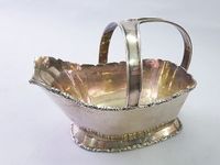 JUVENTO LOPEZ REYES, MEXICO, XXe siècle : panier à bouteille en argent uni 925 mil. les bords à moulures appliquées de petits rinceaux. L’anse à trois sections. Travail mexicain moderne. Cygne. 688 g. H. 18 cm. L. 23 cm environ. L. à la base : 19.5 cm. Rayures d’usage.
