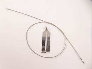 300 / 500 €Pendentif FRED en or gris 750 mil représentant un calibreur retenant un diamant brillanté (signé et numéroté), avec son collier câble en or gris 750 mil (signé). (Longueur : 42,5 cm). (Fermoir défectueux). 13,8 g.
