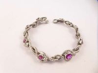 Bracelet en or gris 750 mil à maille torsadée alternée de rubis taille coussin dont un plus important de 0,50 carat environ, et de diamants 8/8 et TA. (Eclats et manques de matière). (Longueur : 18 cm). 32 g.