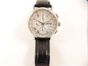 Montre bracelet d'homme DREYFUSS & Co Valjoux chronographe en acier, boîtier rond, cadran argenté à chiffres romains, 3 compteurs, guichet jour et date à 3H, mouvement automatique, sur bracelet cuir usagé à boucle déployante papillon siglée. Edition limitée n°006/150.