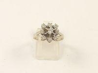 Bague en or gris 750 mil centrée d'un diamant entouré de diamants 8/8 (Tdd : 53). 4,1 g.