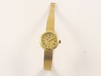 Bracelet-montre de dame e nor 750mil, boîtier rond,cadran doré à chiffres romains, tour de bras souple en or 750 mil tressé, MAUD, mouvement quartz. (Longueur : 18,5 cms). 30 g. brut
