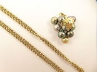 Lot en or 750 mil : pendentif (perles de culture grises), collier (longueur : 61 cm). 17,8 g. brut