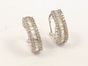 Paire de boucles d'oreilles en or gris 750 mil centrées d'une ligne de diamants baguettes bordée de lignes de diamants ronds brillantés. (Manque deux diamants baguettes sur l'une, tordue, accidentée). 8,7 g.