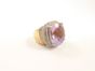 Bague de cocktail en or rose et or gris 750 mil, la corbeille pavée de diamants taille brillant, centrée d'une améthyste facettée en serti griffes. (TDD - avec anneau de mise à taille soudé - : 52,5). 19,6 g. brut