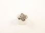 Bague en or gris 750 mil à chaton mouvementé centré d'un diamant TA de 0,15 carat environ en serti griffes, ponctué de diamants taille 8/8. (TDD : 52). (Manques de matière). 6,1 g.