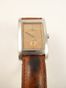 Montre-bracelet d'homme BAUME & MERCIER "Hampton" en acier, cadran rectangulaire à index et chiffres arabes, petite seconde à 6H, mouvement à quartz, sur bracelet en cuir usagé à boucle ardillon en métal.