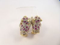 Paire de boutons clips d'oreilles en or 750 mil à motif de félins sertis de diamants et rubis (au modèle des lots précédents). 9,6 g.